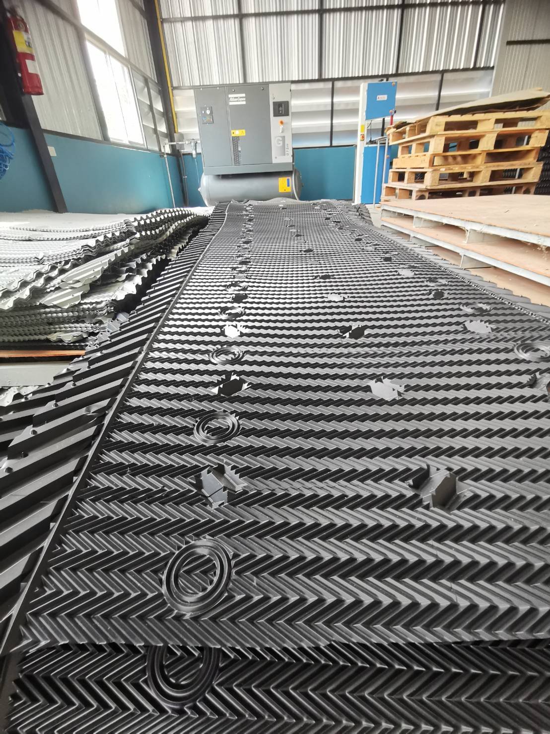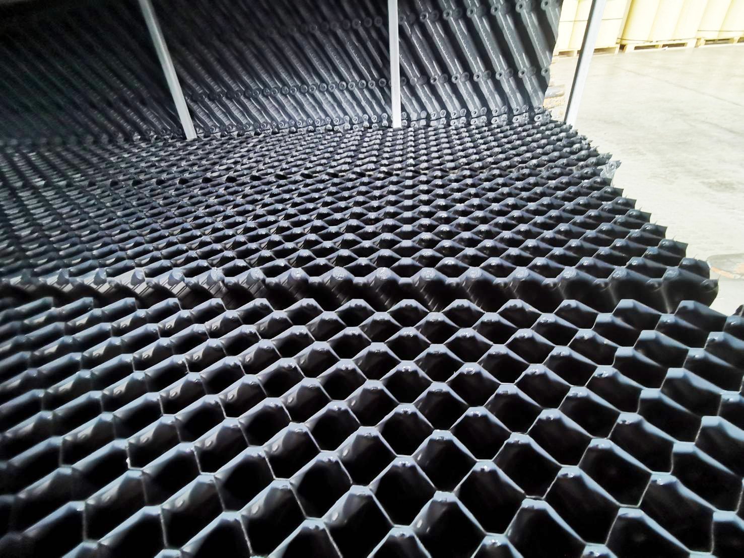 This media is designed for Cross flow type cooling tower Construction and Materials PVC fill film type model, BURGED BF-17