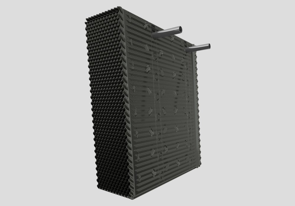 designed with Integral louvers and eliminators each sheet. The high thermal performance and low pressure drop are balanced by the engineered design , flame retardants according to ASTM E-84 and maintaining the highest manufacturing standrad.